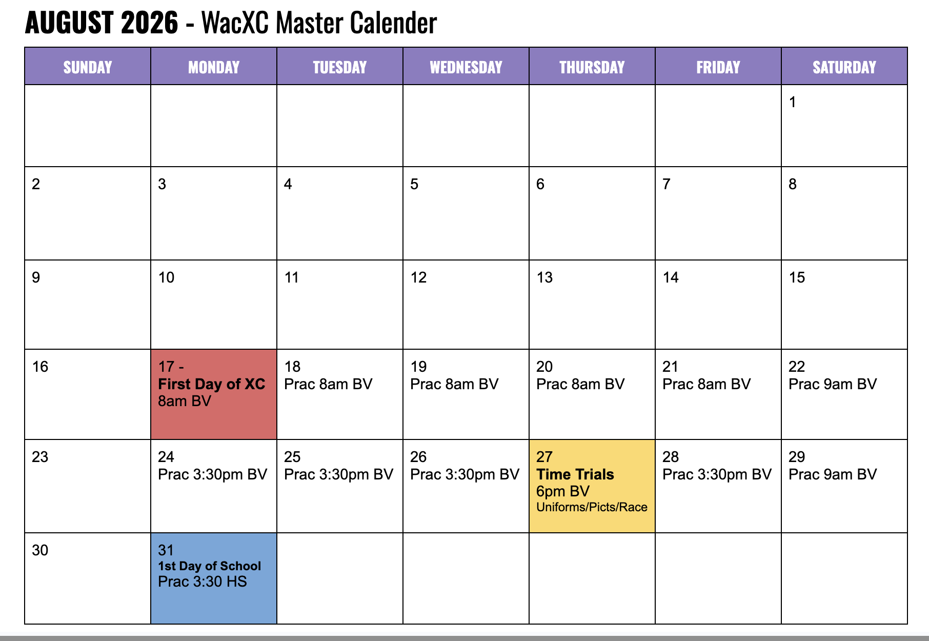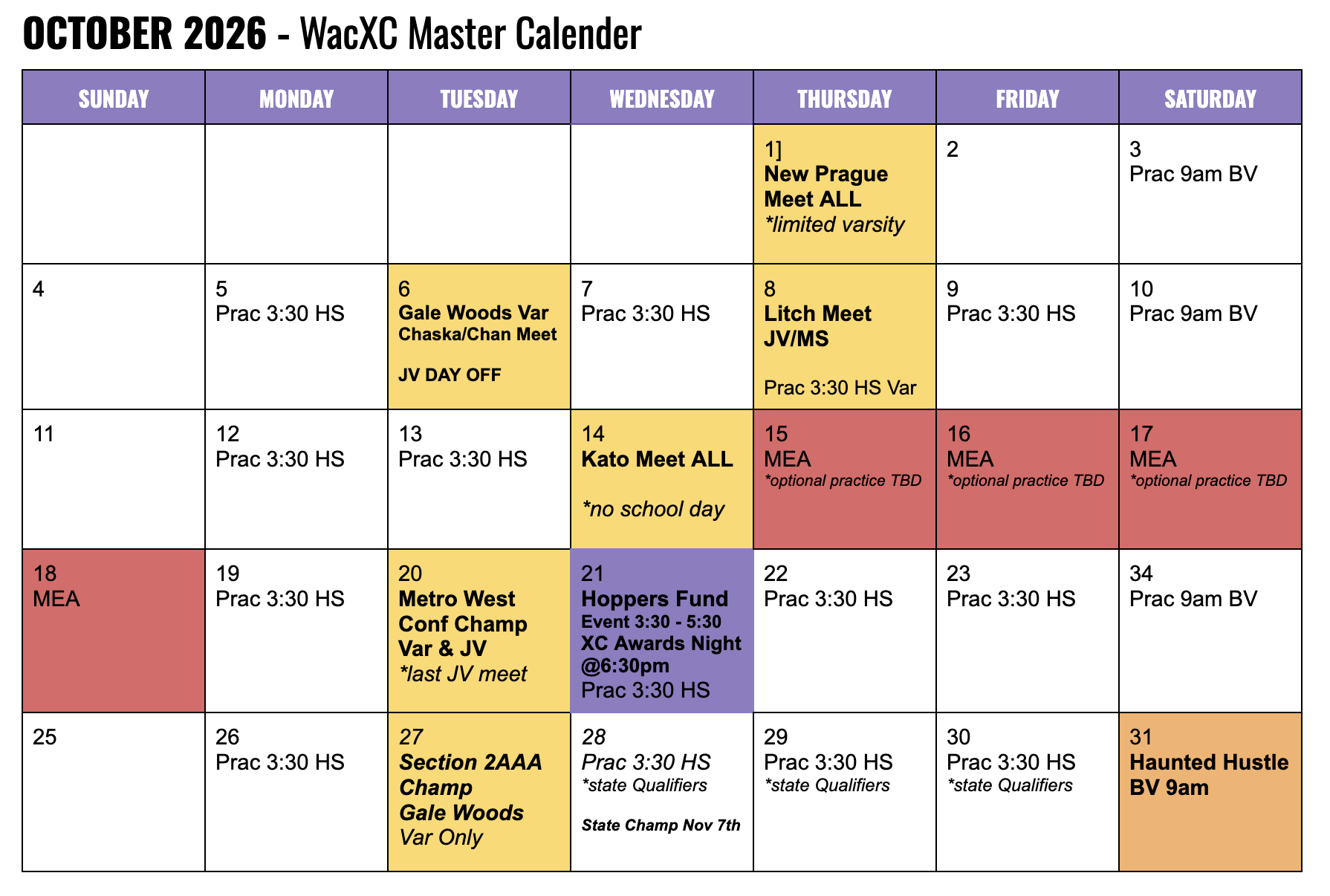 2026 XC Schedule